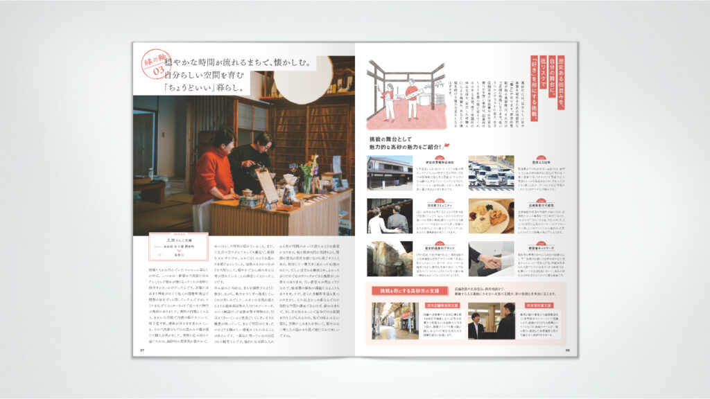 高砂市 移住・定住促進パンフレット「TAKASAGO MEETS」の企画・制作を担当しました。街の魅力を情報として並べるのではなく、「人」の視点から紐解くことで、暮らしの温度まで伝わるコンテンツを設計しました。